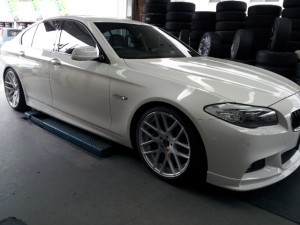 常連さんのO様です。ROHANAの20インチから交換です!今度は5シリーズにちょっと無理?な22インチをいってみよ~って話しになってWALDのILLIMAに決定です、こりゃーなかなかカッコィイ、ついでに減ってしまったローターをDIXCELに交換でーす