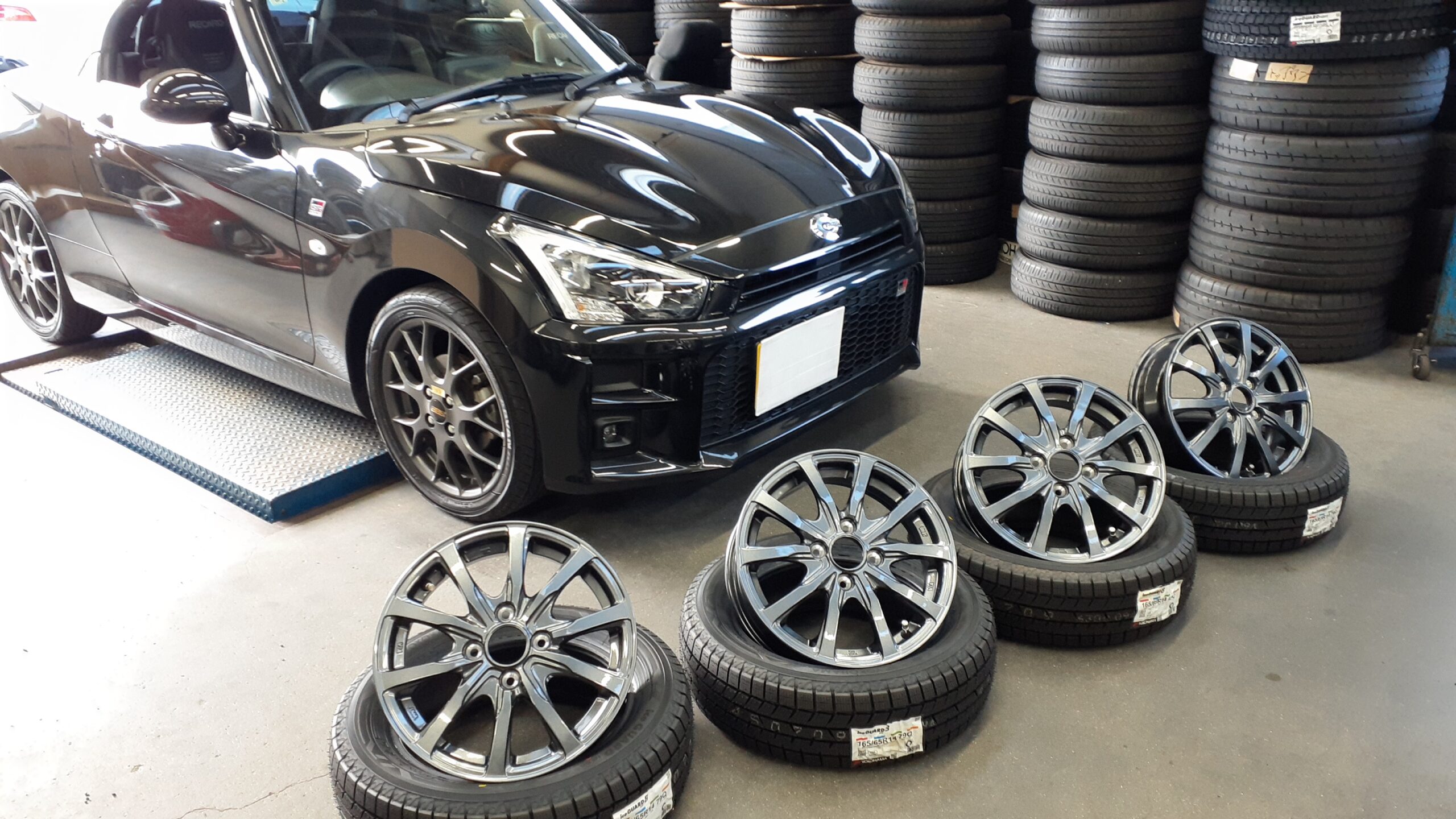 まずは常連さんのM様がスタッドレスのセットをお買い上げ頂きました!14インチにサイズダウンしてヨコハマIG80でございます