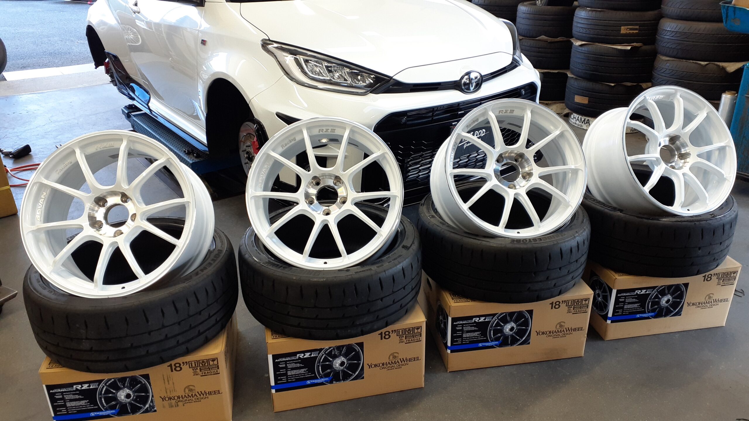 これは昨年末の作業でございます。常連さんのN様です。今までのホイルと悩まれてADVANレーシング,RZⅢ,のホワイトをオーダー頂きました!