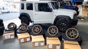 チームおやぢの常連さんです。今回は奥様の愛車に1インチアップのスプリングとネオムーンⅢの16インチにホワイトレターで!って事でオープンカントリーR/Tでオーダー頂きました